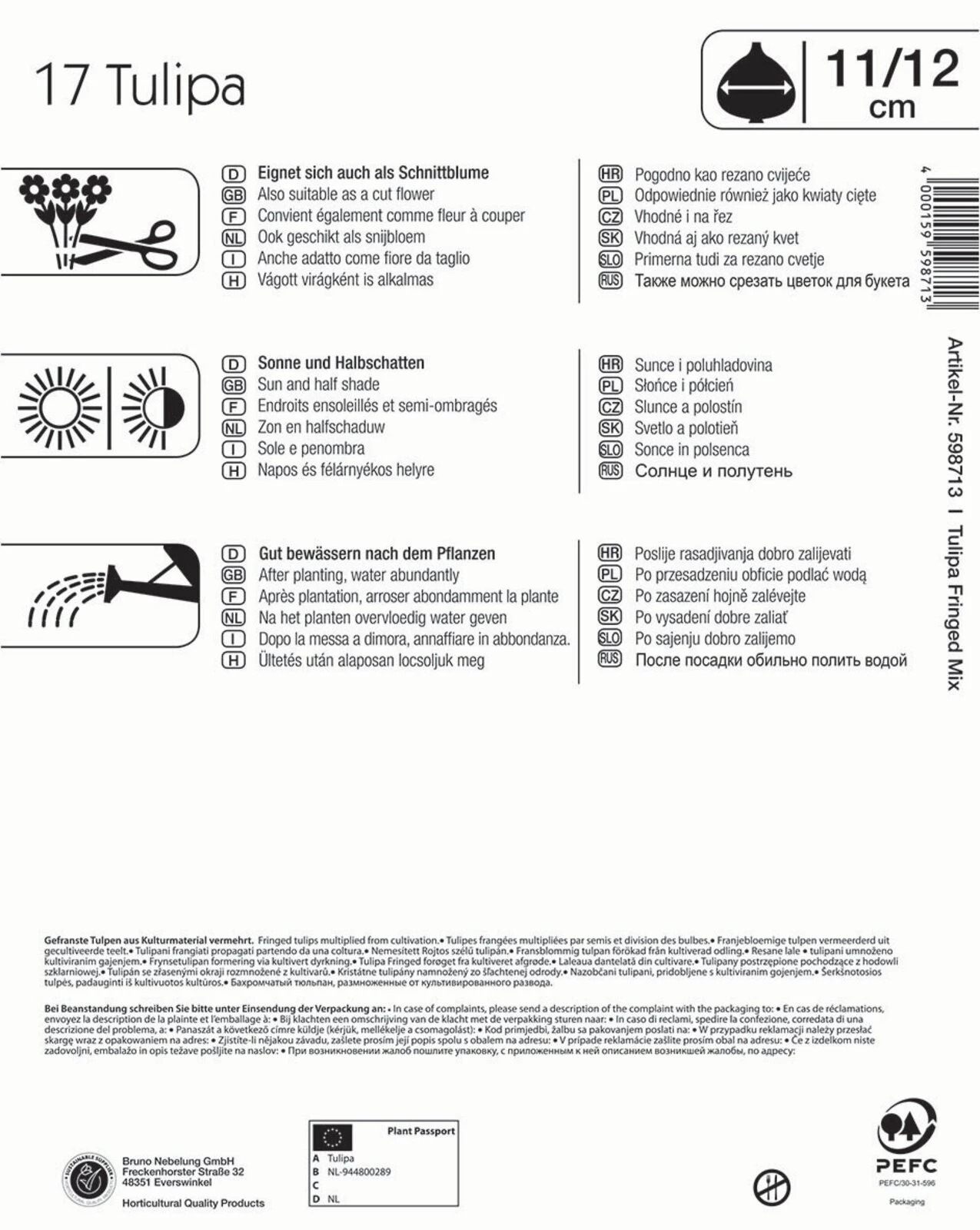 Insgesamt 17 prachtvolle Tulpenzwiebeln enthält dieses Mega-Pack „Gefranste Tulpe Mischung“ von Kiepenkerl. Die stark gefranst blühenden Tulpen leuchten in den Farben Weiß, Gelb, Rot, Pink, Lila sowie Purpur und sind in jedem Garten ein echter Blickfang. Sie erreichen eine Höhe von etwa. 50 cm und sind dank ihrer kräftigen, robusten Stiele bestens für den Vasenschnitt geeignet. Von September bis Dezember können die mehrjährigen Zwiebeln an einem sonnigen oder halbschattigen Standort in die Erde gesteckt werden. Nach der Winterruhe stehen sie April und Mai in entzückender Blüte.