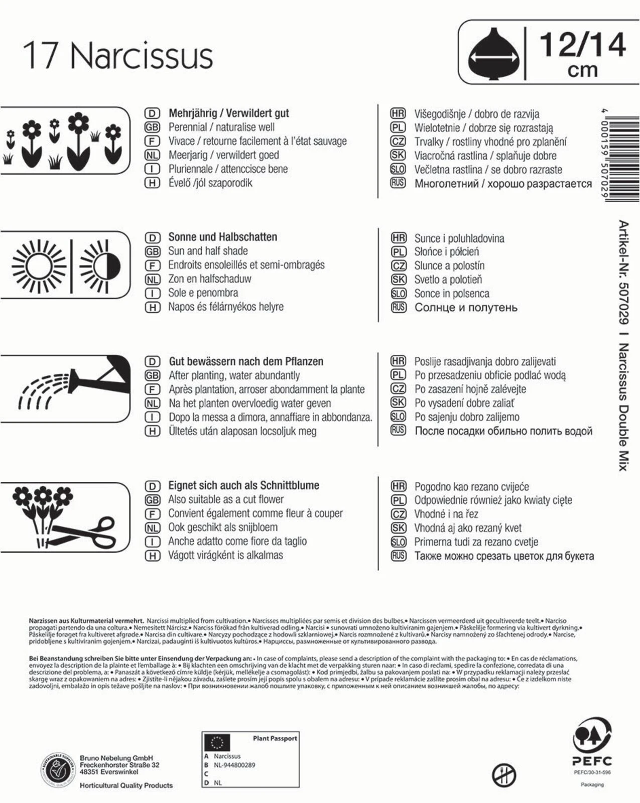 Wahre Frühlingsgefühle kommen auf, wenn das Mega-Pack „Narzissen Gefüllte Mischung“ im Garten blüht. Diese Mischung enthält sowohl intensiv-gelbe Narzissen als auch Narzissen, die in einem feinen Pastellgelb blühen. Die Blüten sind gefüllt und wirken dadurch besonders romantisch. Die Blumen wachsen auf eine Höhe von bis zu 40 cm heran und entfalten ihre Pracht von März bis April. Im Anschluss verwildern sie gut und kommen damit auch in den nächsten Jahren wieder. Alternativ dazu können Sie die hübschen Narzissen auch schneiden und einen schicken Frühlingsstrauß damit gestalten.