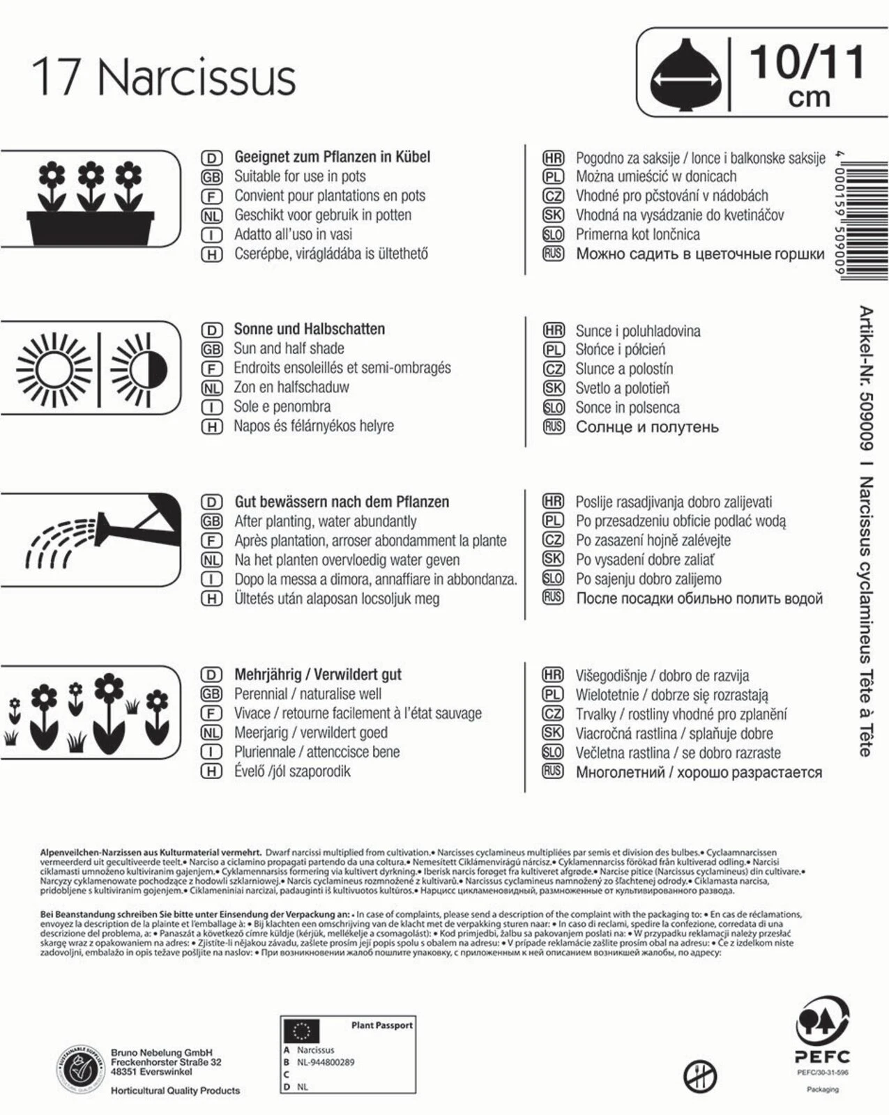 Die mehrblütigen Narzissen aus dem Mega-Pack „Steingarten Narzisse ‚Tête à Tête'“ gedeihen am besten in sonniger bis halbschattiger Lage und auf einem normalen Gartenboden. Genauso gut können diese Blumen aber auch in Kübeln und Töpfen angepflanzt werden, denn sie werden lediglich 15 cm hoch. Dadurch können Sie sowohl Ihren Garten als auch Ihren Balkon mit den schönen Blumen schmücken. Mit ihrer intensiven gelben Farbe sind sie wahre Frühlingsbotschafter, die von März bis April blühen.