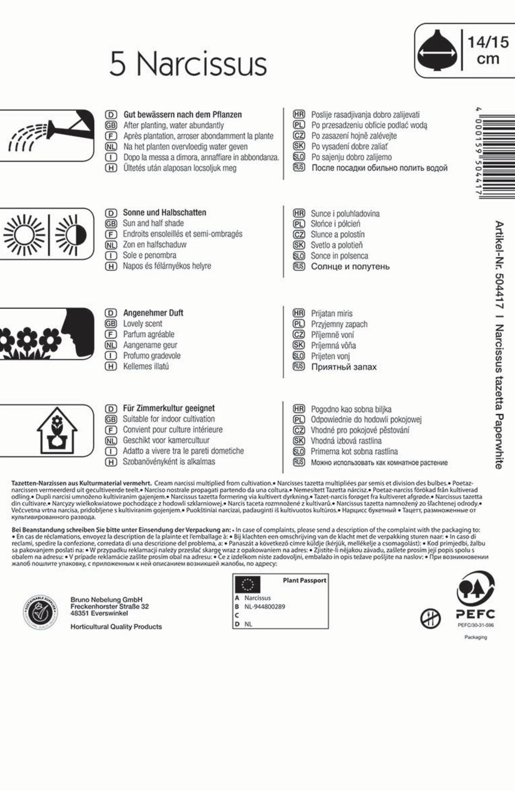 Die Narzisse ‚Paperwhite‘ blüht mitten im Winter, noch dazu mit süßem, betörendem Duft. Ihre schneeweißen Blüten sitzen an den ca. 30 cm hohen Trieben und sind auf jeder Fensterbank ein echter Hingucker. ‚Paperwhite‘ ist nur für die Gefäßkultur im Haus geeignet. Ende November können die Zwiebeln gesteckt werden, danach sind sie reichlich zu wässern. Die Wurzelbildung erfolgt schnell und bereits 4 Wochen nach dem Pflanzen öffnen sich die ersten Blüten.
