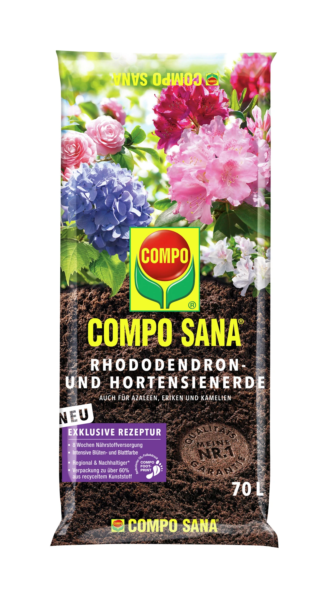 Hochwertige Spezialerde für alle Rhododendren, Hortensien, Azaleen, Eriken und Kamelien sowie andere säureliebende Pflanzen. Das auf die Bedürfnisse der Pflanzen abgestimmte Dünger-Depot wirkt sofort und gewährleistet eine bis zu 8 Wochen optimale Nährstoffversorgung. Für bestes Wurzelwachstum und die Bildung schöner, lang anhaltender Blüten sorgen der COMPO Gärtnerhumus und der COMPO Wurzelaktivator.
