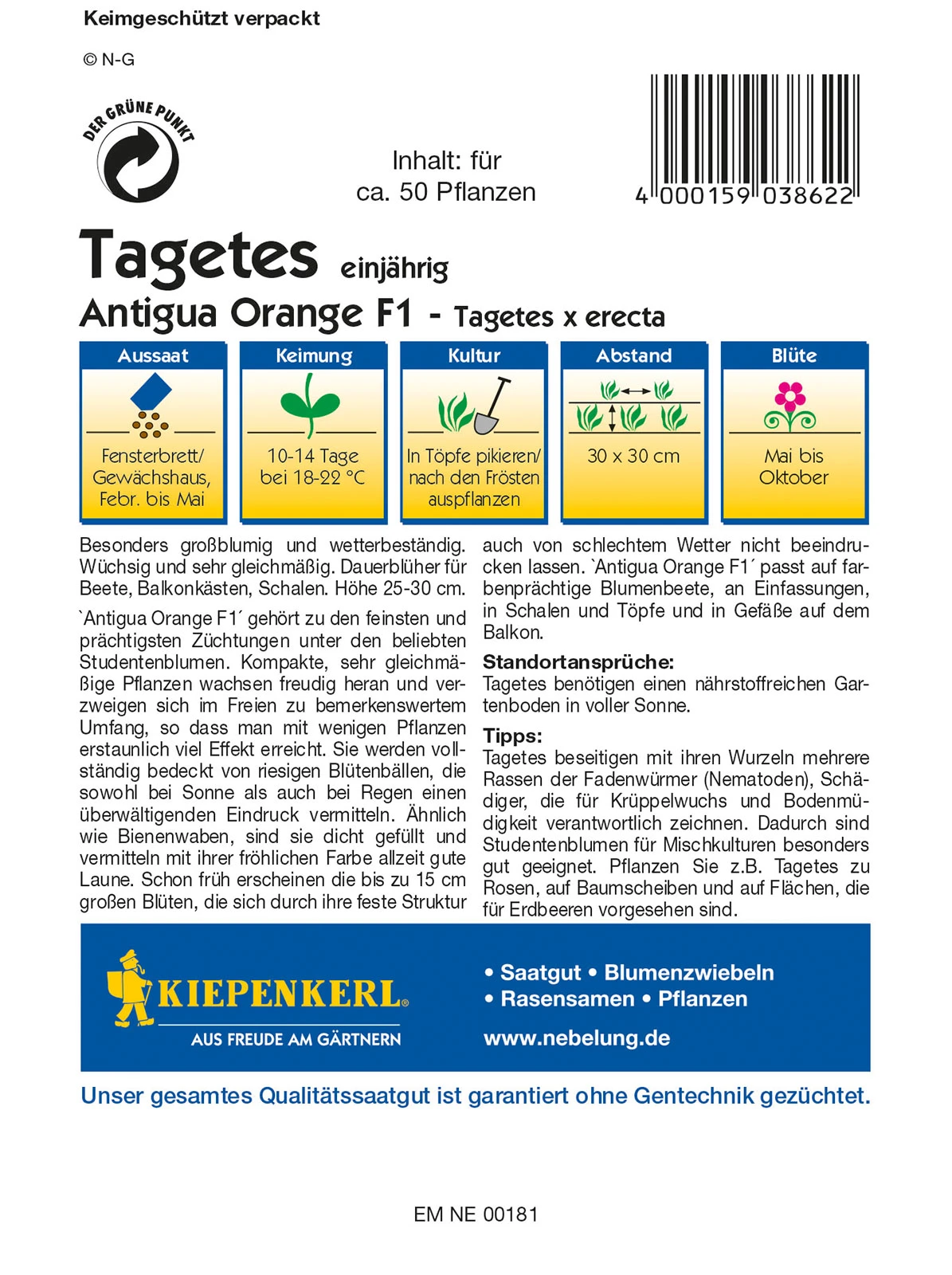 Tagetes Antigua Orange F1 | Studentenblumensamen Von Kiepenkerl
